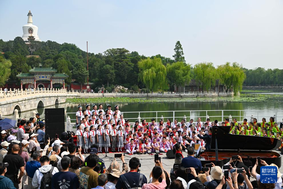 白塔下放歌迎“六一”