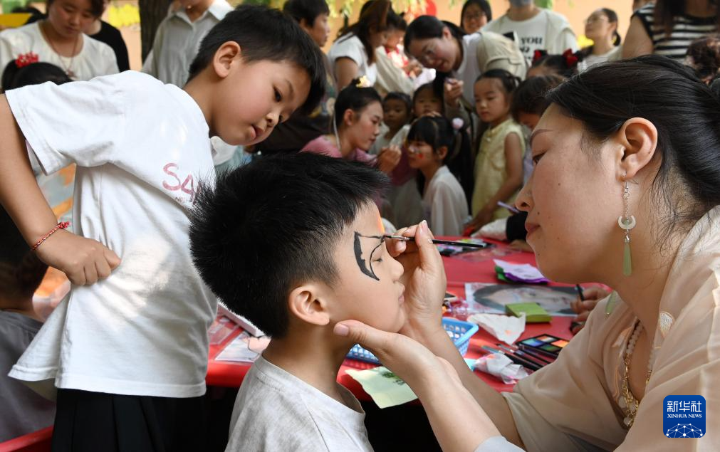 娃娃迎端午 5月28日,在河南省沁阳市白庄村幼儿园,老师为小朋友画面部彩绘。 端午节和儿童节临近,各地开展丰富多彩的活动,让...