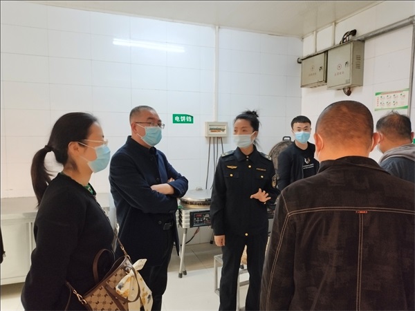 为加强校园食品安全监管,切实保障广大师生身体健康和饮食安全,有序推进2023年春季食堂专项治理工作, 3月29日中午,宝鸡市市监管局高新区分局、食品流通科王春侠科长、高新区资助中心办公室主任王万涛一行相关领导到西城高中检查指导食品安全工作。贾凯校长、姬红军校长、总务处李泽胜副主任全程陪同检查。