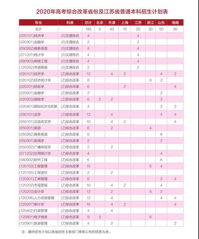 学校2020年招生计划数比上年有所增加,计划总数为4105人,比上年增加60人。我校2019年文史类最低分数:532分,最低位次:10695分。理工类最低分数为:484分,最低位次:52102。我校今年普通本科专业的录取规则改为“分数优先、级差为零”的原则,更有利于考生选择报考专业。