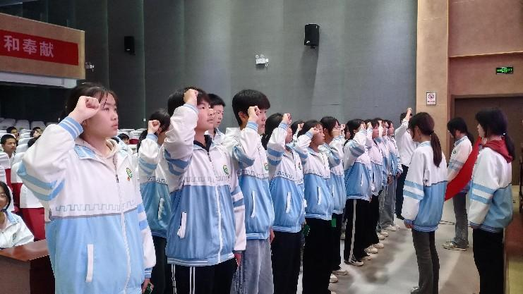 八年级(5)张羽轩同学代表新入团员发言,她说“十分光荣加入共产主义青年团,作为新入团员自己一定会坚定理想信念,履行团员义务,践行团员使命,努力学习科学文化知识,争做新时代优秀团员。”九年级(2)班尤天宇同学代表老团员发言,他表态一定会发挥老团员传、帮、带作用,尽心竭力帮助新团员熟悉团组织生活,让他们在团组织中快速成长,切实履行共青团员责任与使命。张永奇副校长解读了团员的权利和义务,并向团员们提出了希望和要求。