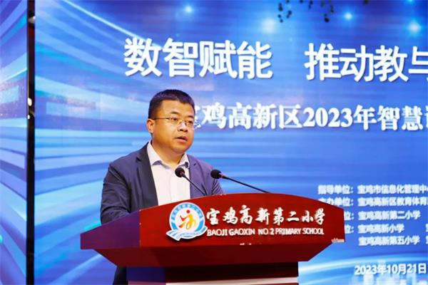 为进一步深化数字环境下教与学的变革,激发教学评一体化的深度研究,促进教学教研的数字化转型,助力智慧校园建设再上新台阶,赋能基础教育高质量发展。10月21日,由宝鸡高新区教育体育局主办,宝鸡高新第二小学承办,宝鸡高新小学、宝鸡高新第四小学、宝鸡高新第五小学、宝鸡高新第六小学协办的 “数智赋能,推动教与学高品质发展”智慧课堂研讨会在宝鸡高新第二小学共美厅举行。