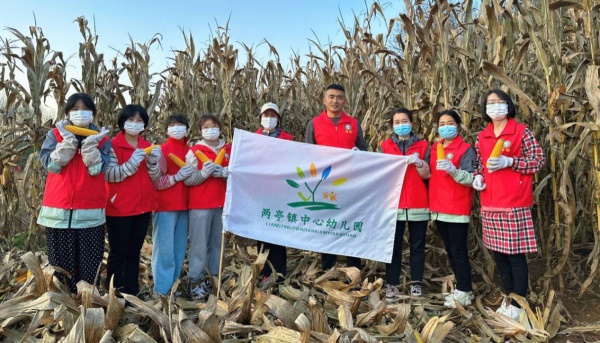 农田里,志愿者们明确分工,一字排开,掰的掰,装的装,运的运,干的热火朝天。