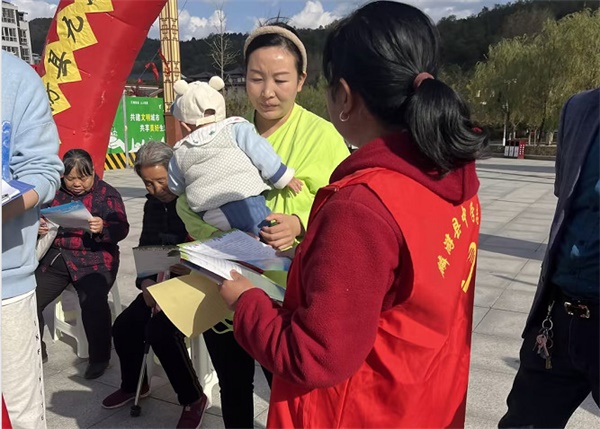 广场上,志愿者们一边发放宣传资料,一边热情宣讲,全面普及文明礼仪常识,宣传移风易俗新风,忙得不亦乐乎。