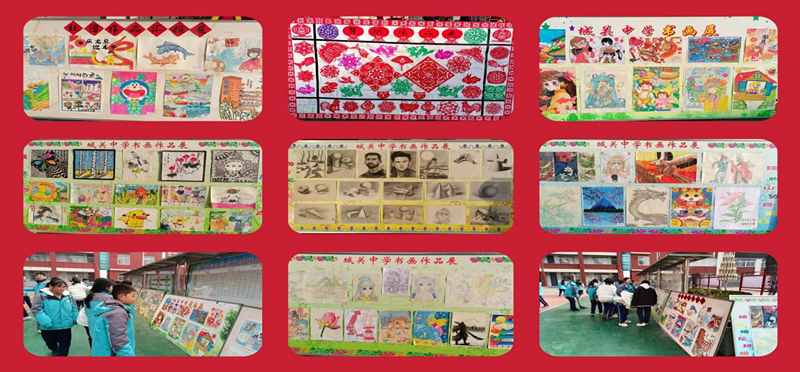 校园共呈现各类学生作品展板30余个,一幅幅精彩纷呈的绘画,一张张栩栩如生的剪纸,一个个规范工整的字体,既展现了同学们乐学上进、追求美好的心灵世界,又展现了学校落实立德树人、推进素质教育的成果,同学们用自己的爱好与特长喜迎2024年元旦。