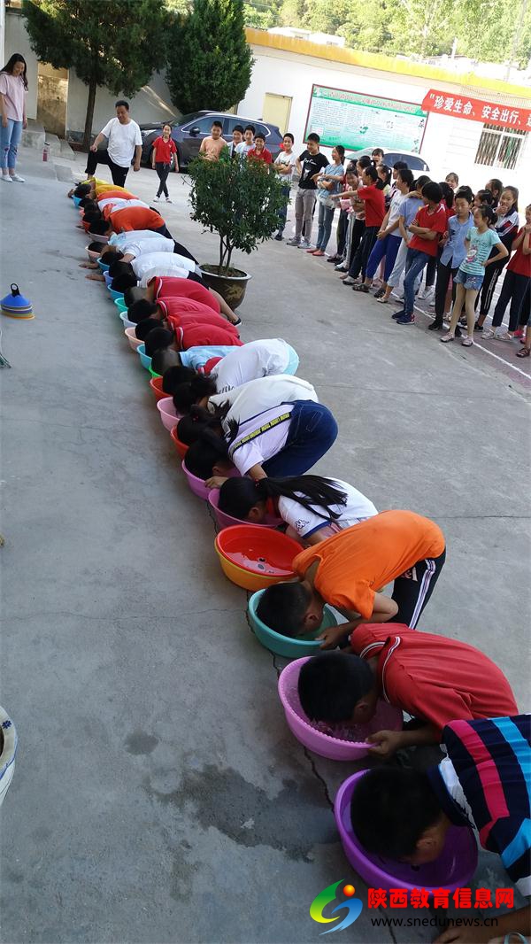 接着是模拟溺水体验,体育老师在台上演示了水中憋气的方法,各班主任和任课老师一起亲自指导学生在自带的脸盆中进行憋气体验,使同学们感同身受,深深触动了学生的心灵。